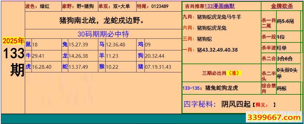 主题 :133期:小鱼儿30码期期中+幽默猜测