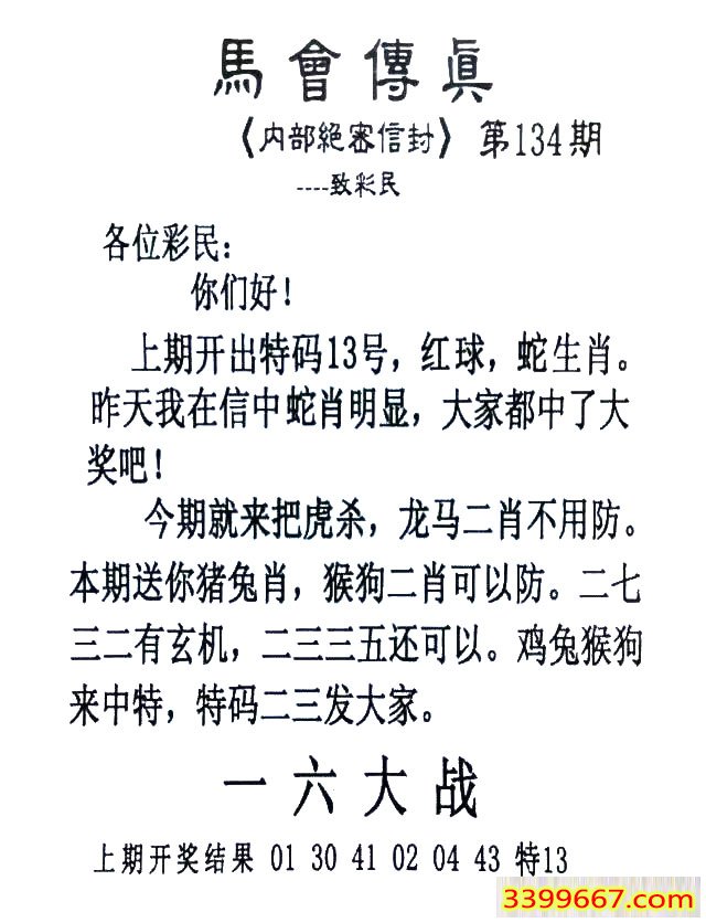 主题 :134期:首发推荐:≮馬會傳眞≯→(香港正版)